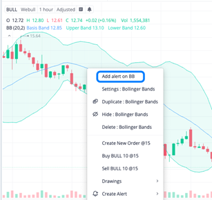 1. Right-click on your chart, and select the alert option from the pop-up menu to start the setup process.