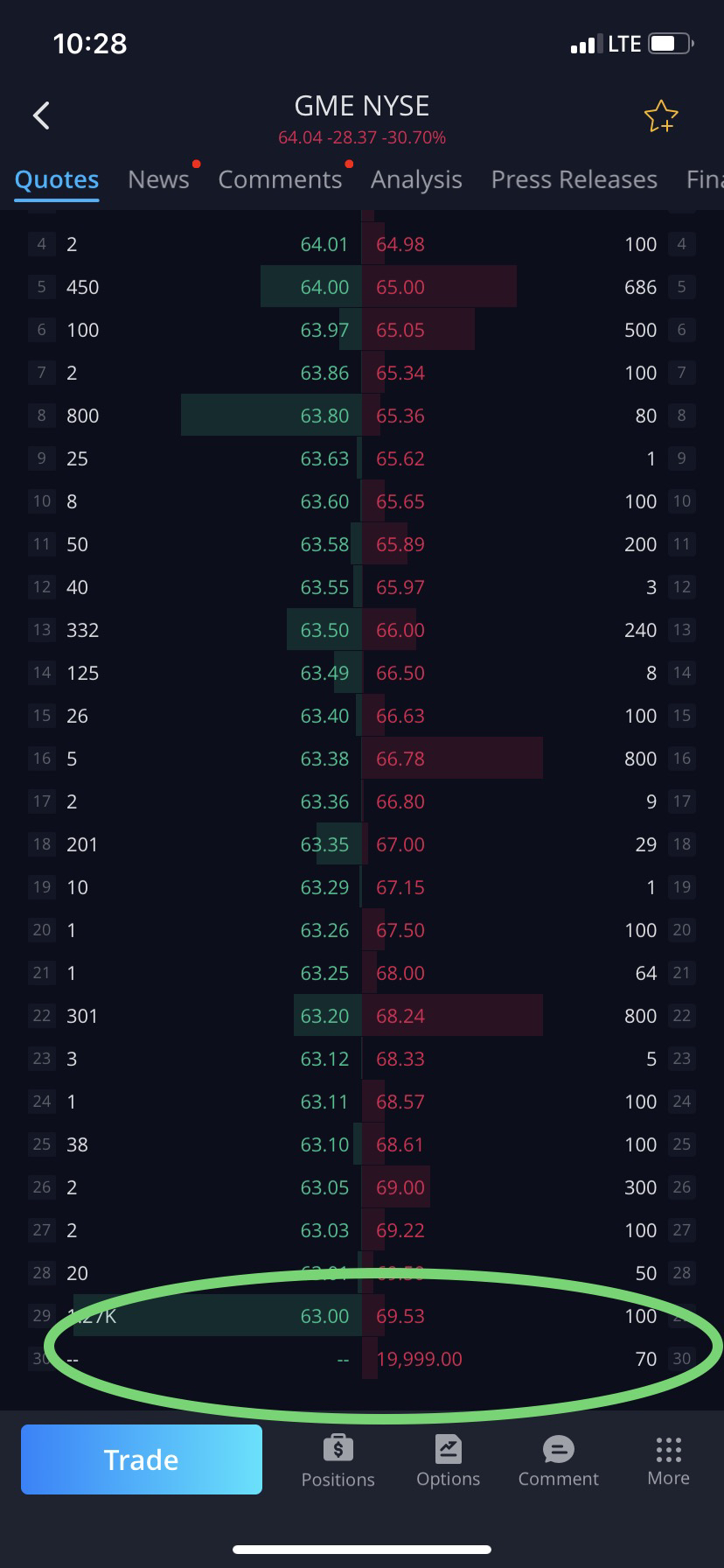 $Gamestop Corp This is a coordinated assult on this stock and you see the idiots and bots in the room. You think its above HF to pay folks to post on here and Reddit etc to get their new short positions covered?!? They stand to make it all back if they can get it back down with the help of friends. Im eating today. Ive bought more and might just sell Other positions to buy even more. Loom at these level 2 screen shots! They are still at 120% short interest here and 80% on $Amc Entmt Hldgs Inc!!!! I will not stop And will never sell. sorry not sorry.