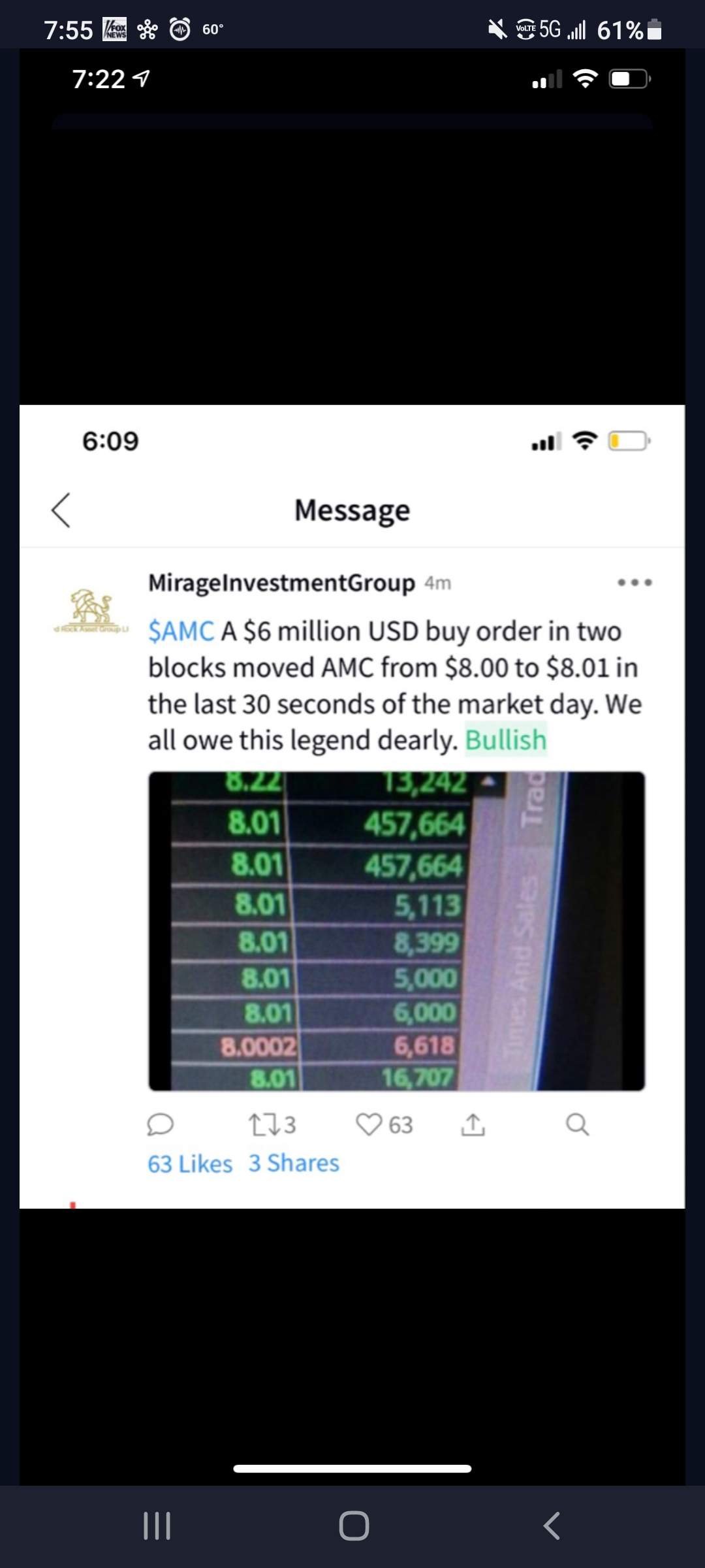 $Amc Entmt Hldgs Inc whomever placed these 2 orders with such precise smartbombs with 30 secs left either had an agenda against the hedges or just wanted to be humored. that 7.5mil purchase literally blew up the hedges and the many of them will lose jobs. you are the kingkong in this apeworld. thx much. 8.01