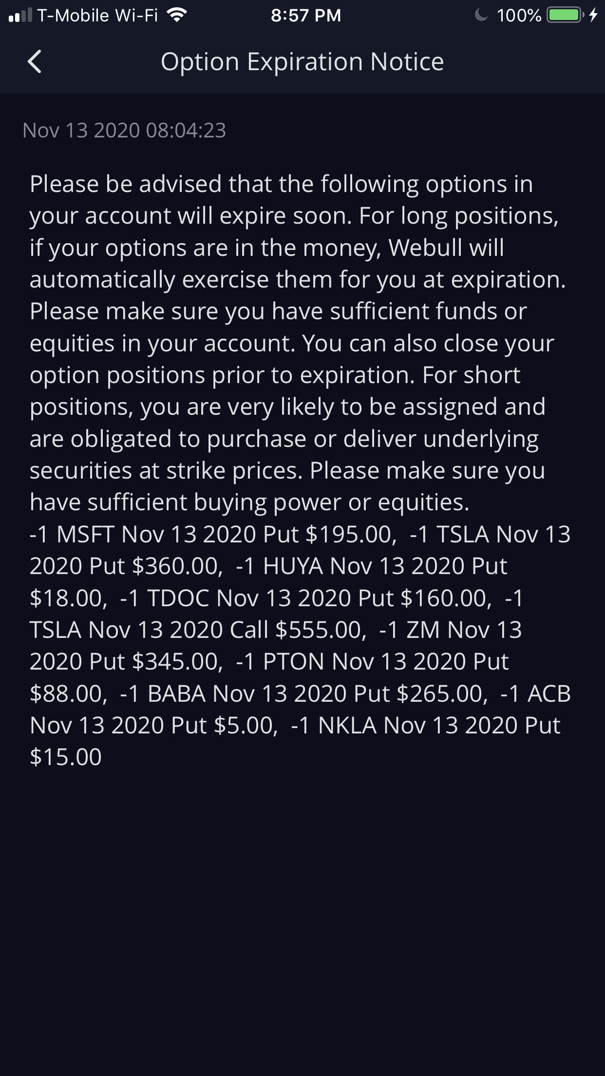 Majority people here buy calls and puts. On the contrary, I sell puts and covered calls to make some easy money. Most of time it works well but every now and then black swan comes and I end up losing big. This week, all the calls and puts I sold $Tesla Inc $Microsoft Corp $Zoom Communications Inc $Peloton Interactive, Inc. $Teladoc Health Inc $Huya Inc $Aurora Cannabis Inc $Nikola Corp made money except that $Alibaba Group Hldg Ltd is the black swan. I'm not too concerned as I'm ready to buy 100 shares of $Alibaba Group Hldg Ltd when my put is exercised. It's ready to fly next week!???