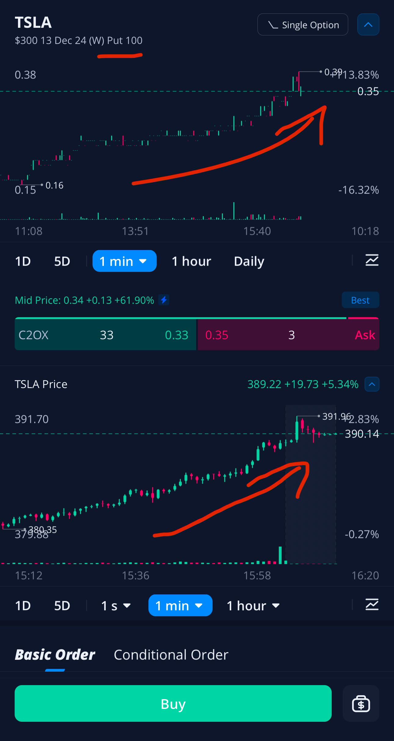 $Tesla Inc Far OTM put get paid for next weekly premium while the price going up, 1st time ever seen in my life. $S&P 500 Index$State Street® SPDR® S&P 500® ETF Trust$Invesco QQQ Trust