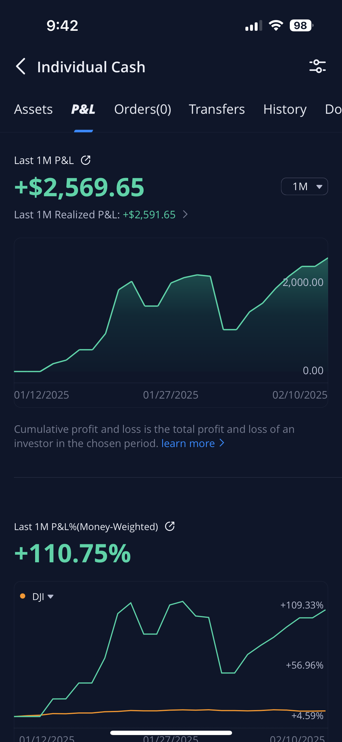 š„ Progress Update ā Mastering Technical Analysis! š„ Over the past month, Iāve been deep-diving into technical analysis and refining my trade execution using AI-powered insights. With the help of ChatGPT for trade planning, Iāve been able to identify high-probability setups and sharpen my decision-making. š Results Speak for Themselves: ā +114.09% P&L in the last month ā $2,591.65 in realized gains ā Consistent daily wins through strategic entries & exits š What Iām Working On: š¹ Improving entry precision with support/resistance zones š¹ Better risk management & stop-loss strategies š¹ Refining my approach to momentum shifts & reversals š Follow my profile for real-time trade updates, analysis, and market insights. Letās keep growing together! šŖ